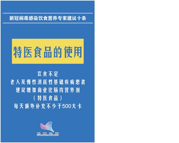 建议六:饮食不足、老人及慢性消耗性基础疾病患者,建议增加商业化肠内营养剂(特医食品),每天额外补充不少于 500 大卡。