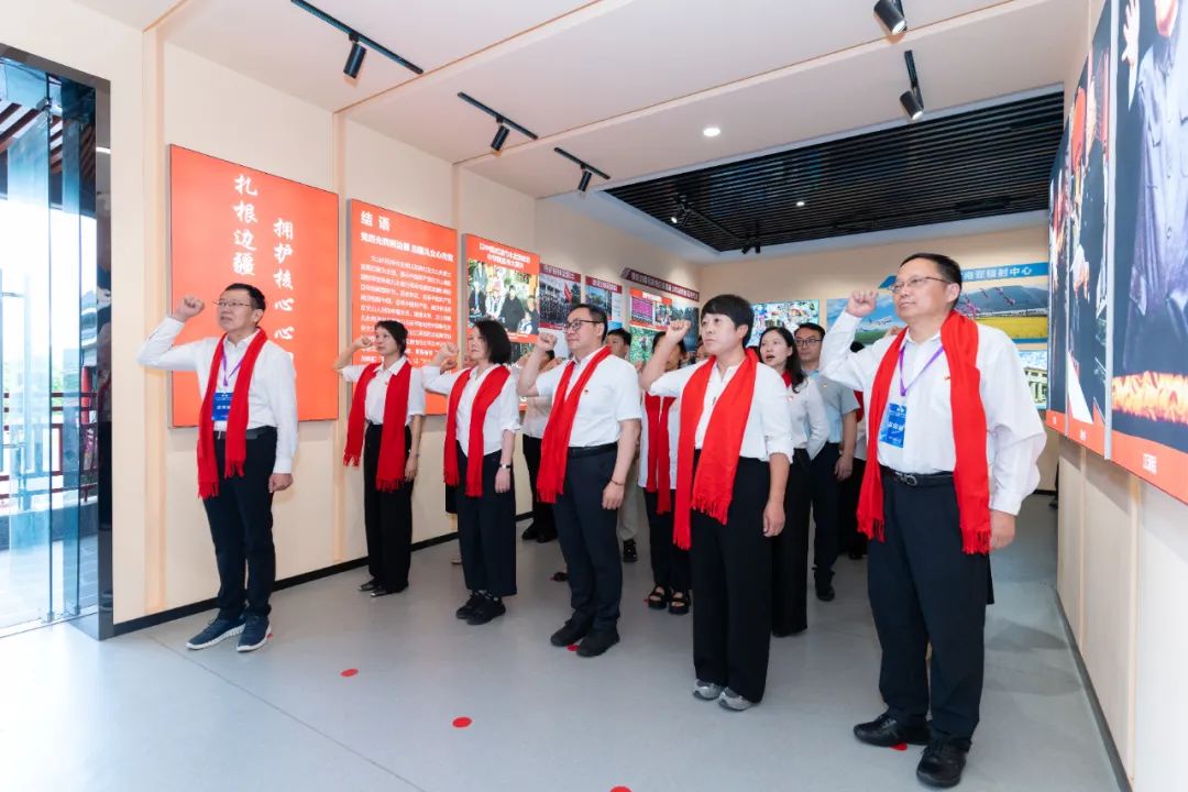 在鲜艳的党旗前,党员代表王晋文同志领誓,全体党员同志神情庄重,以铿锵有力、掷地有声的誓言,再次许下对党的无限忠诚和为共产主义事业奋斗终身的坚定承诺。神圣的誓词在党史馆内回响,是初心使命的再宣示,更是接续奋斗的再出发,激励着每一位在场党员永葆政治本色,勇担时代重任。
