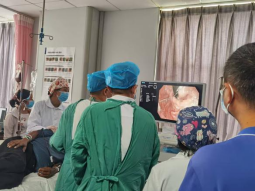 下午,手术演示及手把手带教在丘北县人民医院消化内镜中心进行。南琼、刘阳成、常仁杰等专家亲自操作,进行手术演示,并针对模拟ESD手术、食管胃底静脉曲张破裂出血套扎硬化止血治疗、放大胃镜及超声内镜等内容对学员进行手把手指导,耐心讲解操作技巧和注意事项帮助学员快速提升实操能力。