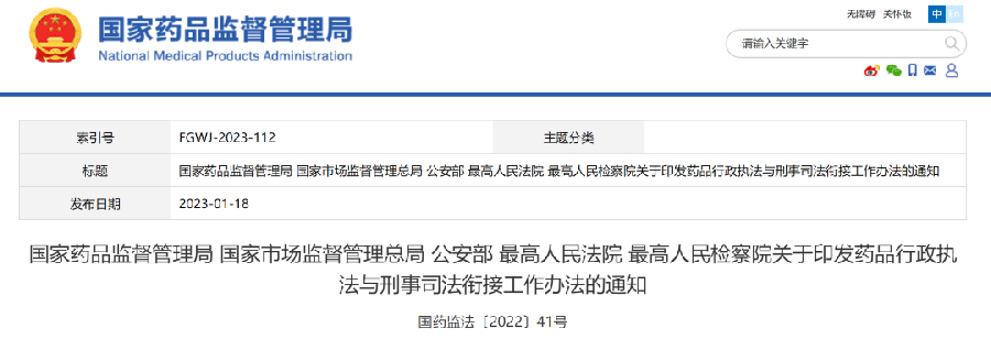 《药品行政执法与刑事司法衔接工作办法》将于2月1日起施行!